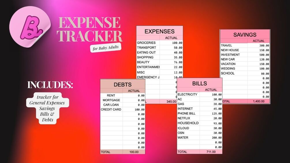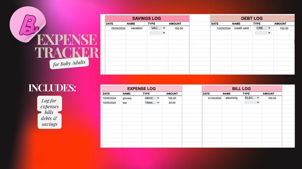 This downloadable Google Sheets template is perfect for baby adults who want to take control of their finances without stress.